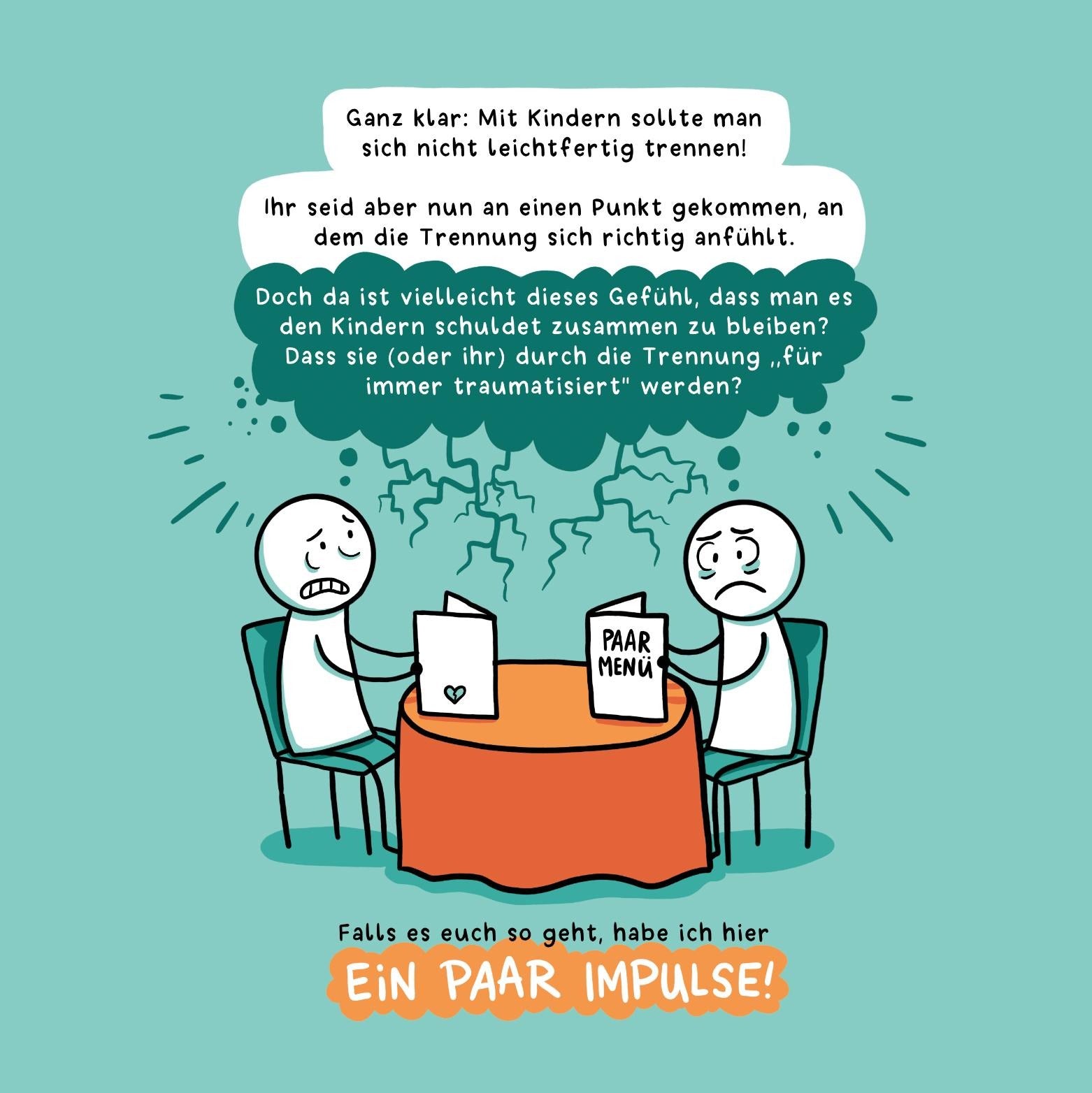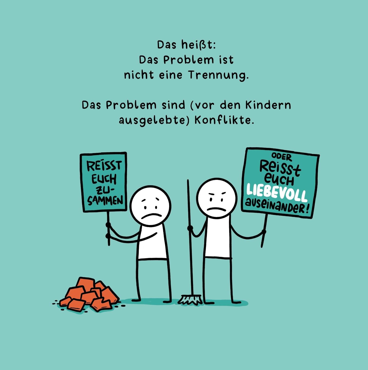 Ihr seid aber jetzt an einem Punkt, in dem die Trennung sich richtig anfühlt und fragt euch, wie ihr die Trennung und Zeit danach so gestalten könnt, dass alle gut aufgefangen sind.